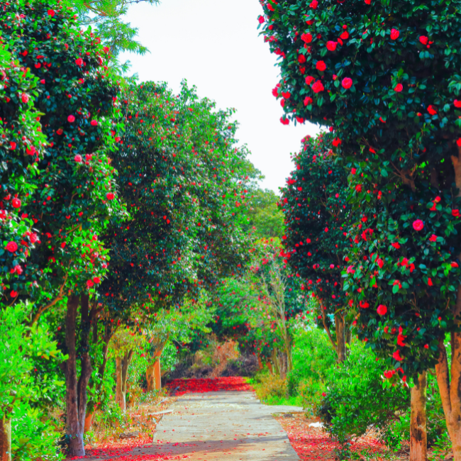 동백꽃이 아름다운 카멜리아 힐은 사계절 꽃구경이 가능한 식물원입니다. 감성 가득한 사진을 남기기에 좋은 명소예요.
